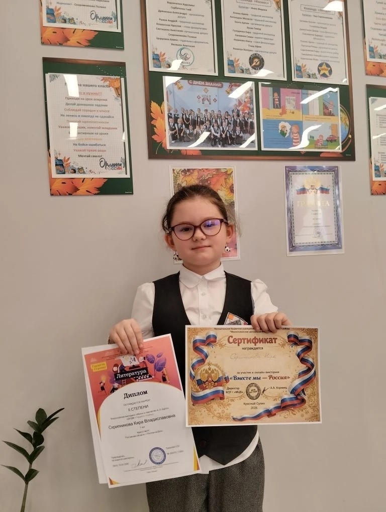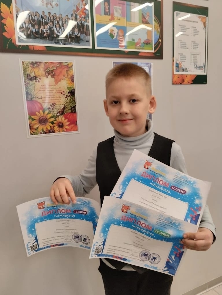 Ученики 1 «А» класса Кошенсков Ярослав и Скрипникова Кира решили провести свои каникулы активно и продуктивно. Ребята приняли участие в различных олимпиадах и викторинах, по итогам которых были награждены почетными дипломами! 🏆
