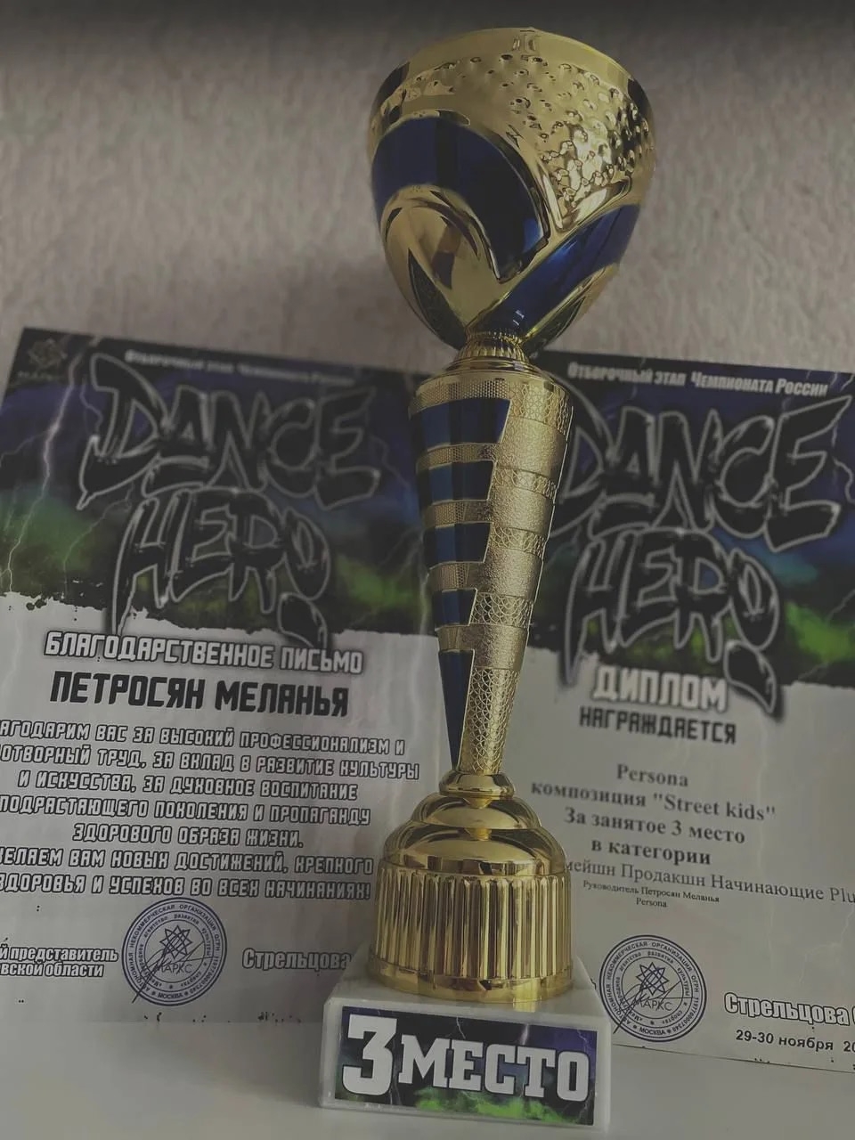 С радостью и гордостью делимся победой обучающейся 5 «А» класса Ашурковой Елизаветы, которая в составе группы школы танцев «Персона» заняла 3 место в отборочном этапе чемпионата России по стрит дисциплинам в г. Ростов-на-Дону в номинации «Юниоры Формейшн Продакшн Начинающие Plus»!!