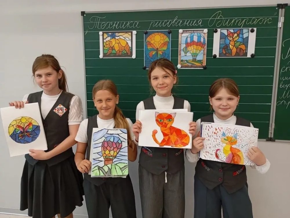 Ученики 4 «В» класса с удовольствием познакомились с новой темой и выполнили задание учителя Глинкиной А.М. Изучение темы «Витраж» принесло детям множество полезных результатов — как в творческом, так и в личностном и познавательном развитии. Работы получились яркие и красочные!!!👍